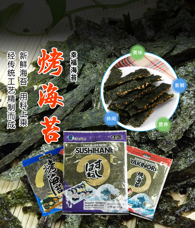上海高岡屋食品有限公司是日本株式會(huì)社高岡屋在中國(guó)投資的獨(dú)資公司,日本國(guó)株式會(huì)社高岡屋于一八九零年創(chuàng)立,在日本有著百年以上的歷史。公司會(huì)長(zhǎng)高岡正則先生早在60年代就來到中國(guó),積極推廣海苔的養(yǎng)殖和加工技術(shù),開拓發(fā)展了中國(guó)條斑海苔養(yǎng)殖加工事業(yè),其產(chǎn)品在日本國(guó)內(nèi)獲得“農(nóng)林大臣獎(jiǎng)”,在美國(guó)和歐亞地區(qū)也深受消費(fèi)者歡迎。